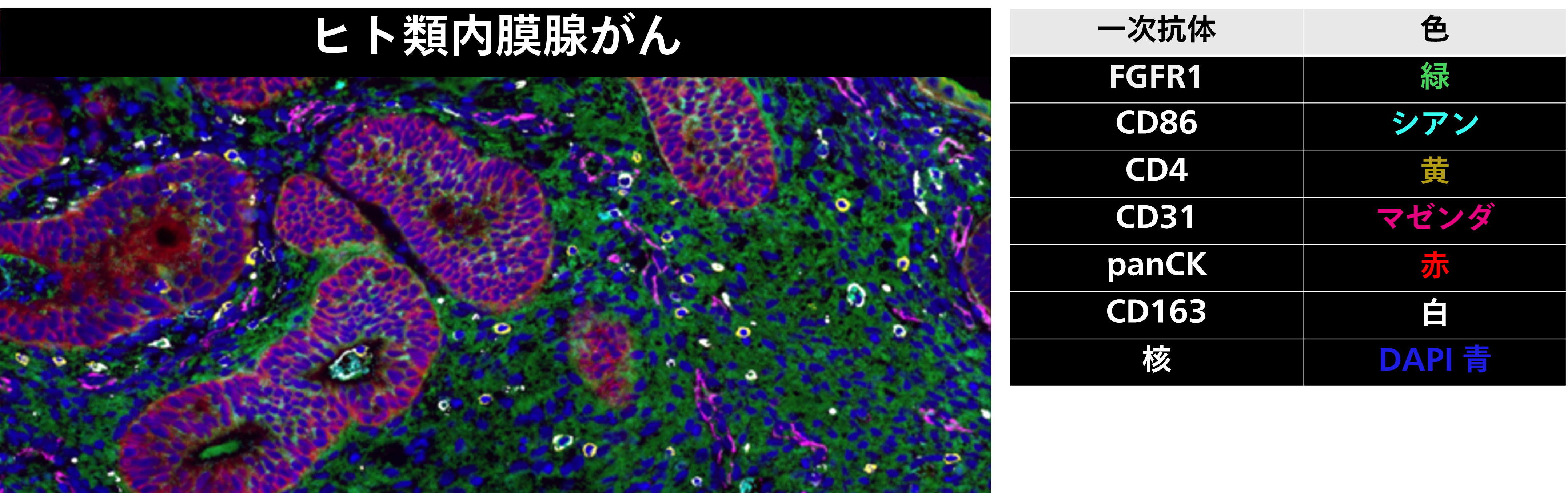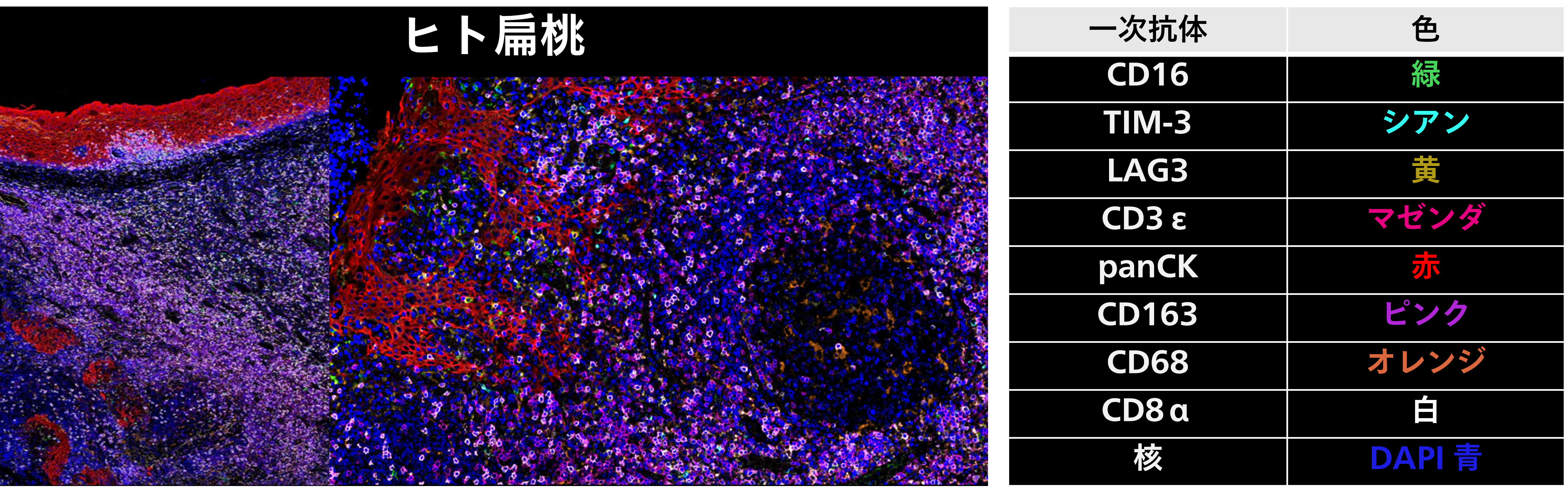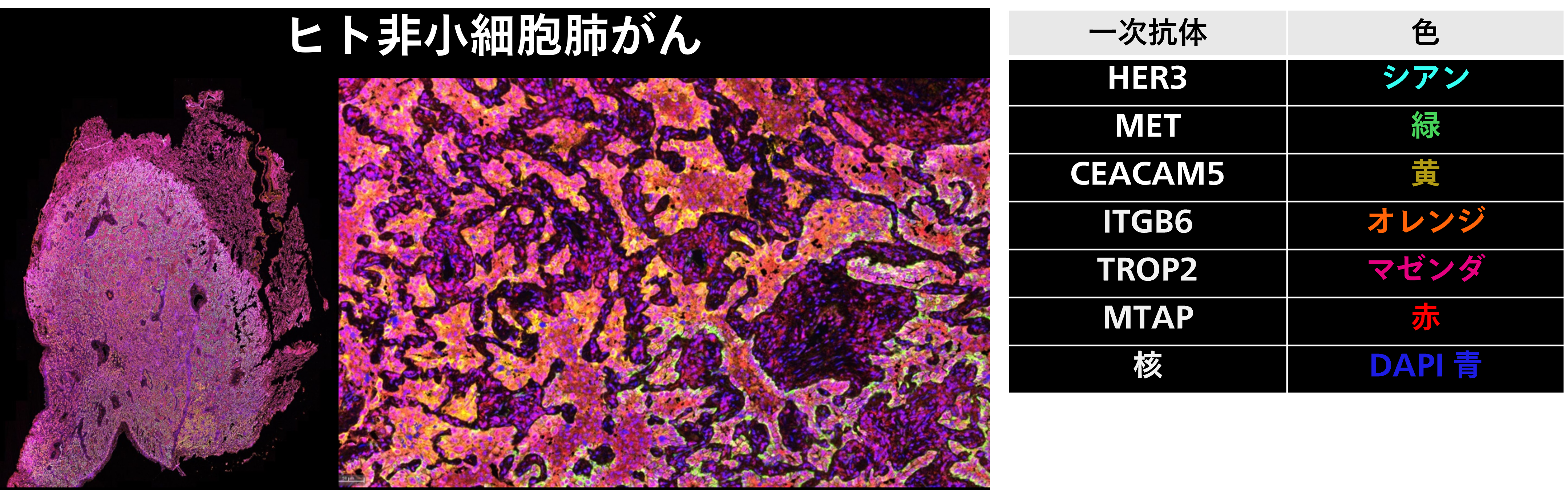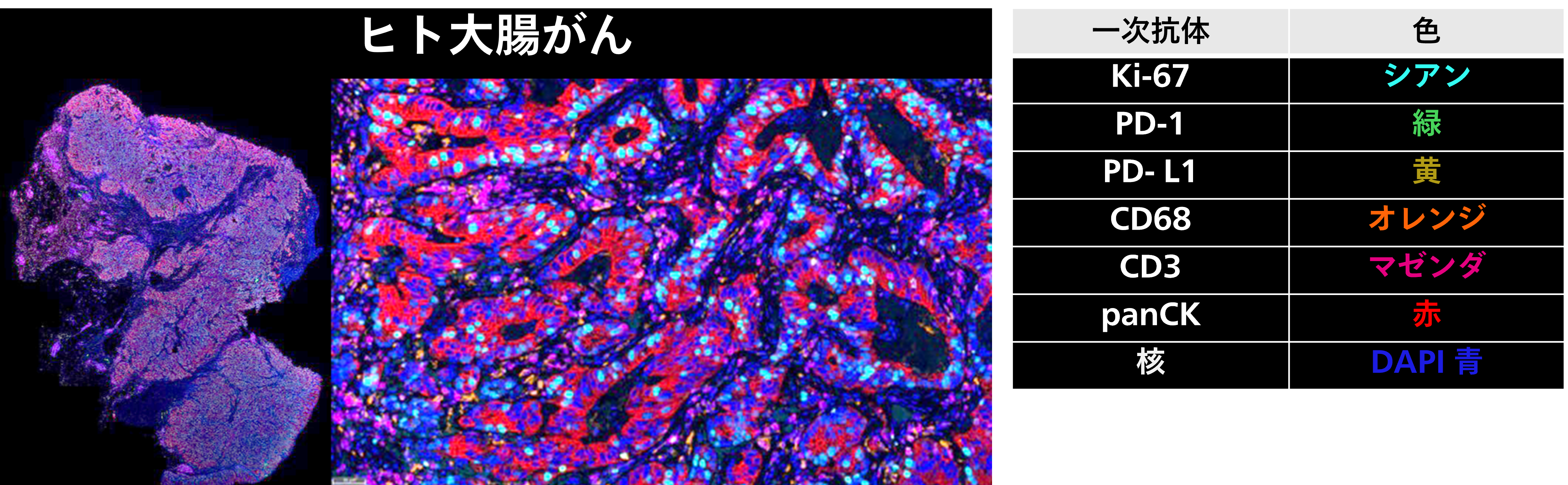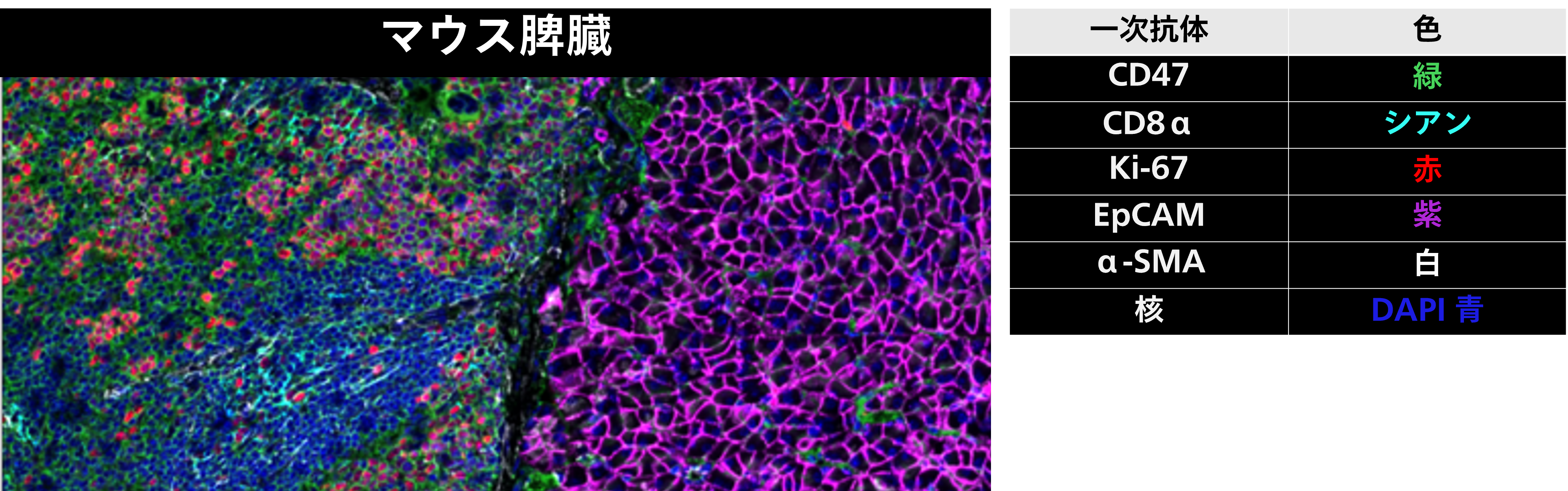このような背景から、がん免疫の研究では、腫瘍微小環境内の免疫細胞のサブセットやがん細胞を分類することが必要になるため、複数の標的を同時に可視化できるという実験の特性が非常に重要になります。